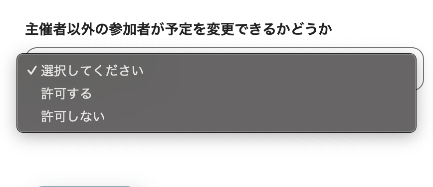 (5)「主催者以外の参加者が予定を変更できるかどうか」の項目はプルダウンから設定できます。