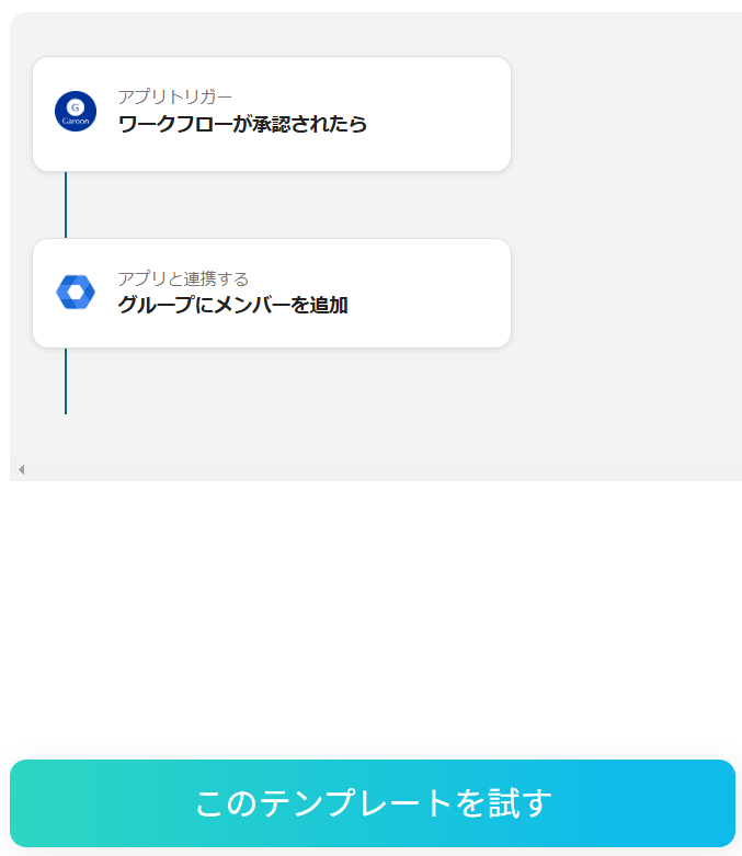 この方法は、Garoonで入社申請が承認されたことをGaroonのAPIを利用して受け取り、Google Workspaceが提供するAPIを用いてグループに従業員を追加することで実現可能です。