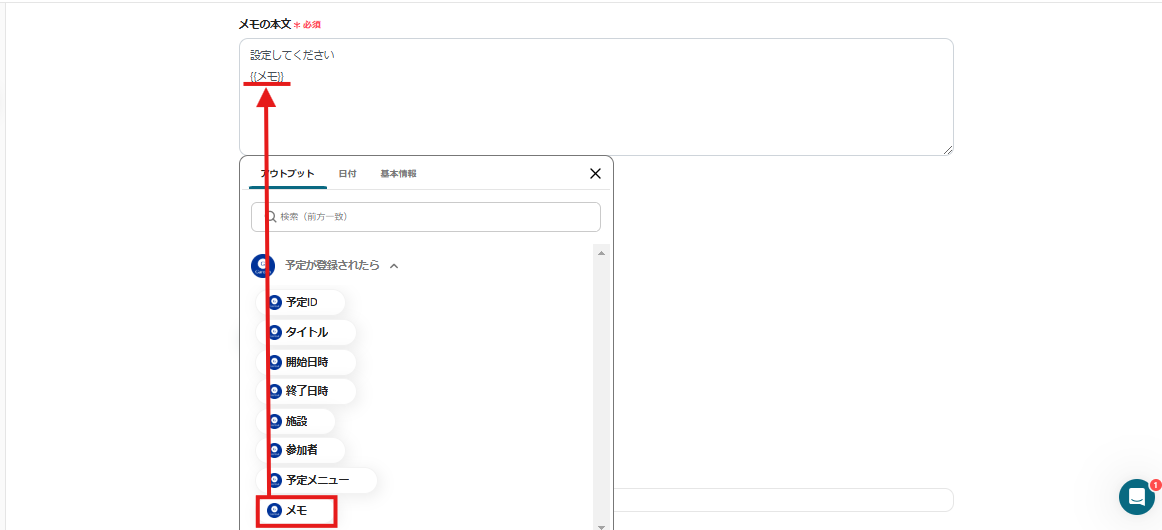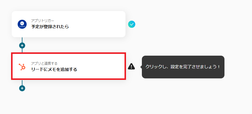 上記画面のように設定すると、Garoonのカレンダーに予定が登録されたら「メモ」を自動で取得し、HubSpotにリードのメモを追加できます。