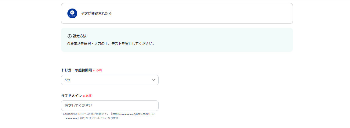 トリガーの起動間隔が設定できたら、Garoonのカレンダーにテスト用の予定を登録してください。