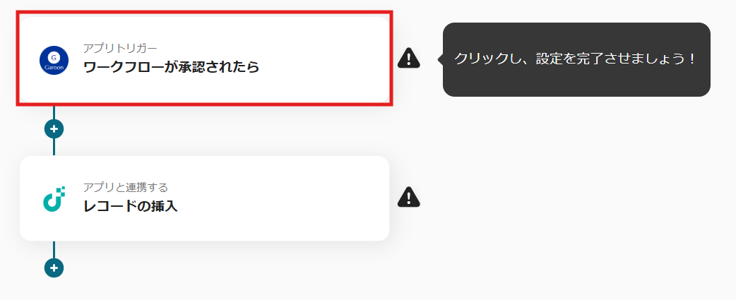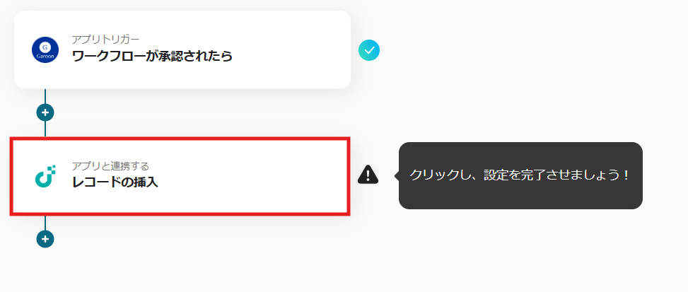 1) フローに戻り、「アプリと連携する レコードの挿入」のアイコンをクリックします。