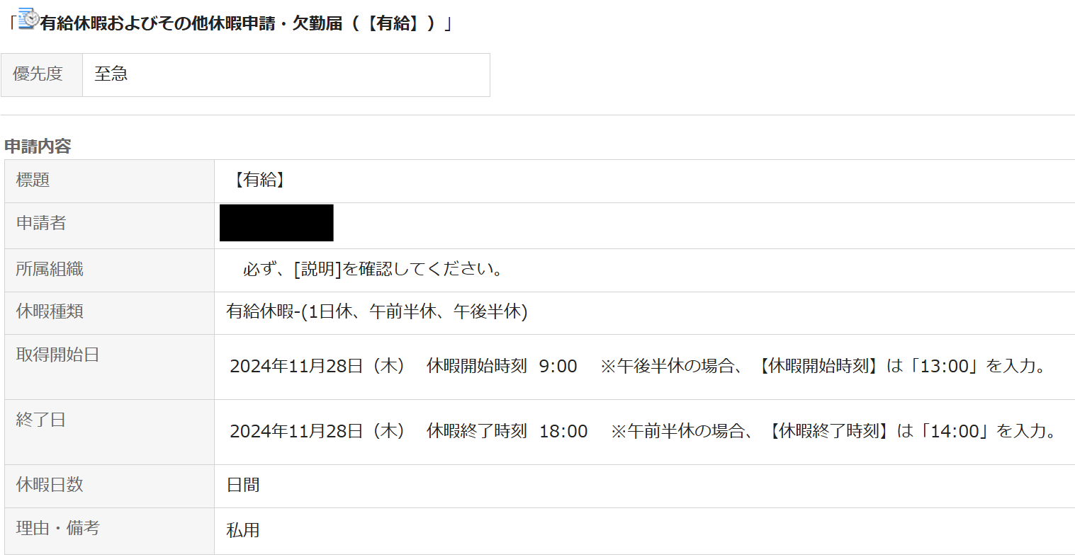有給休暇およびその他休暇申請・欠勤届をクリックします。