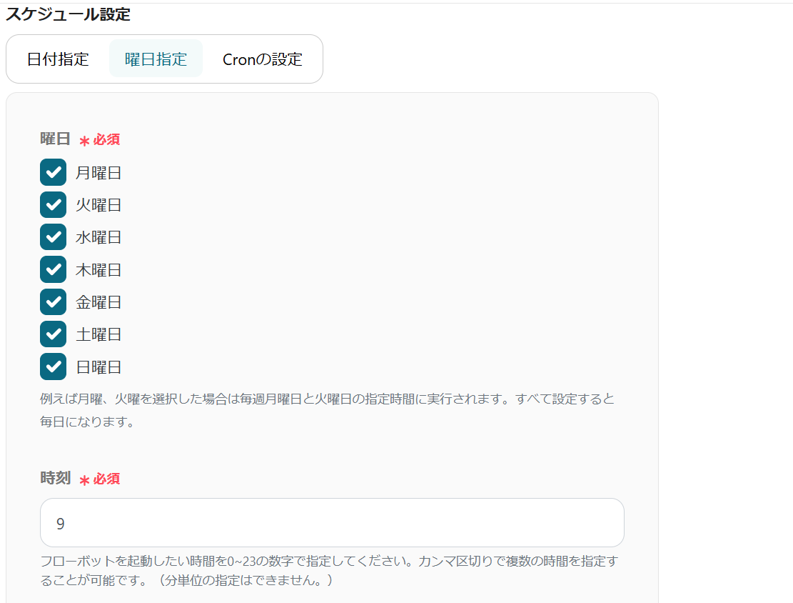 (例:有給休暇と残業申請について申請データの取得がしたい場合、それぞれについてのフローボットが必要)