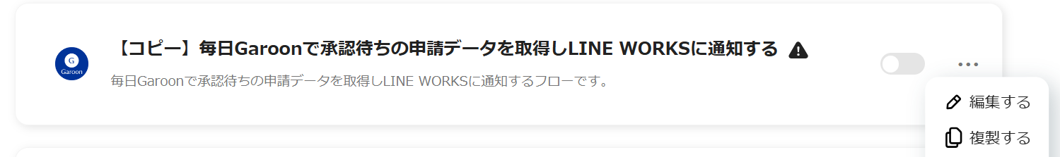 マイアプリ登録が完了したあと、「毎日Garoonで承認待ちの申請データを取得しLINE WORKSに通知する」フローボットを作成していきます。