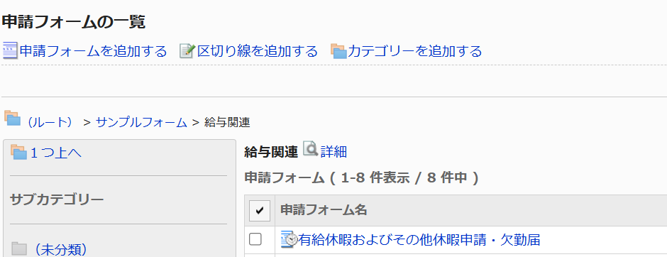 申請フォームの一覧が出るので、サンプルフォームより選択してください。