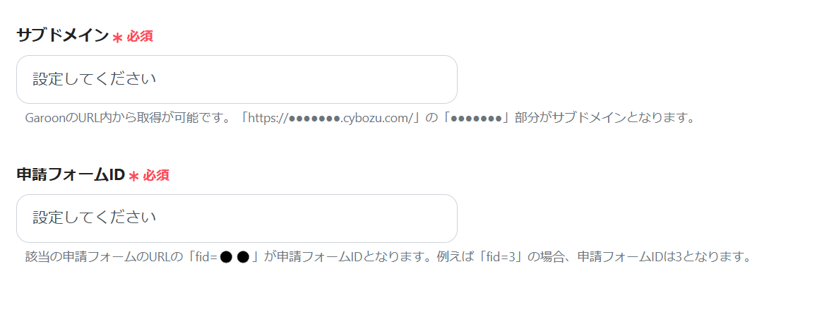 Garoonと検索し、以下の画面で必須項目を登録してください。