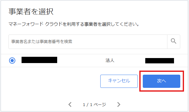 次の画面で、事業者を選択し、「次へ」をクリックしてください。