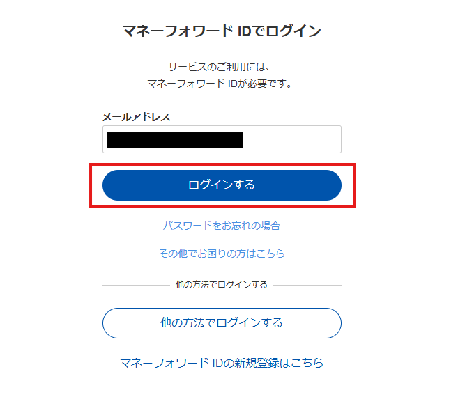 次の画面で、メールアドレスを入力し、「ログインする」をクリックします。