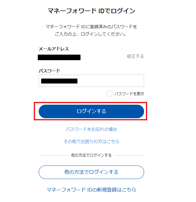 次に、パスワードを入力し、「ログインする」をクリックしてください。