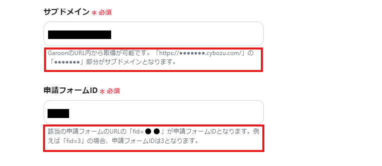 「サブドメイン」「申請フォームID」は、入力欄下の説明に従って、入力してください。