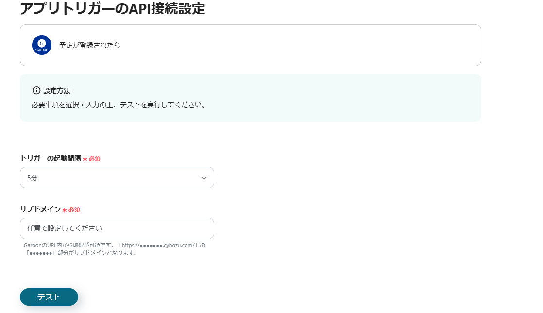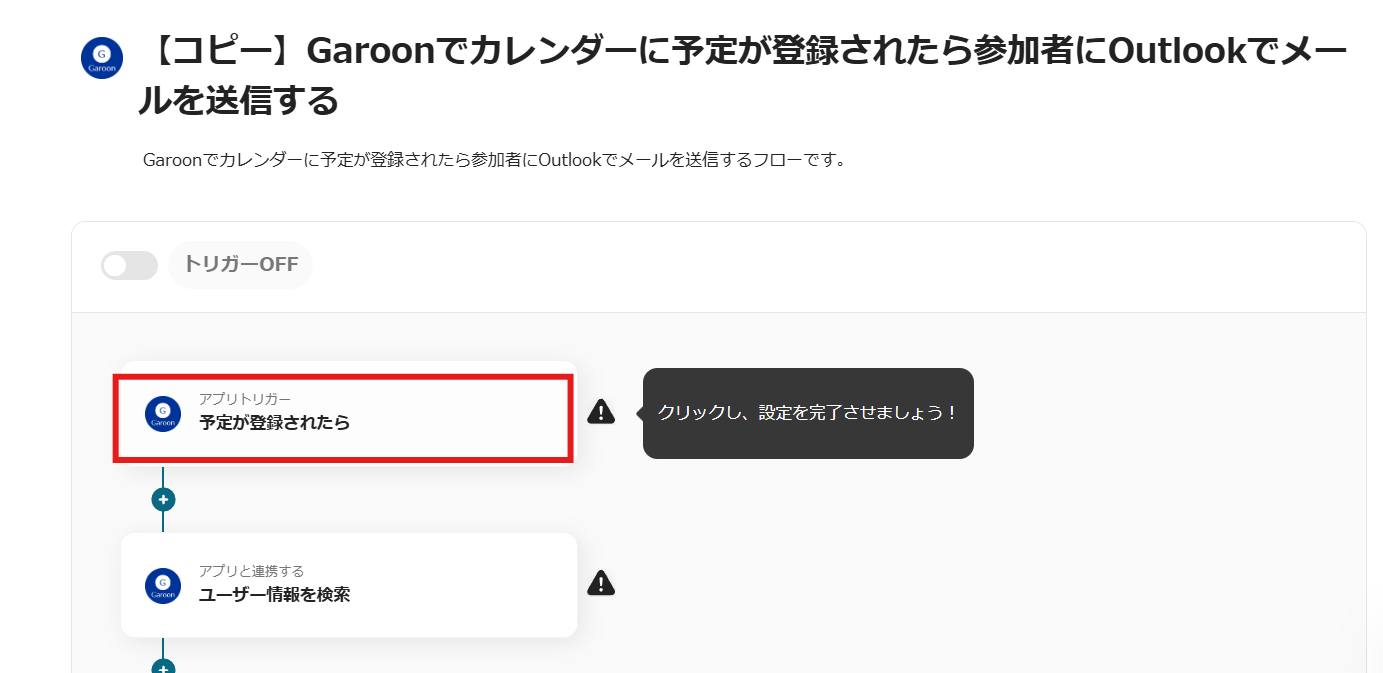 ステップ3:Garoonのトリガー設定