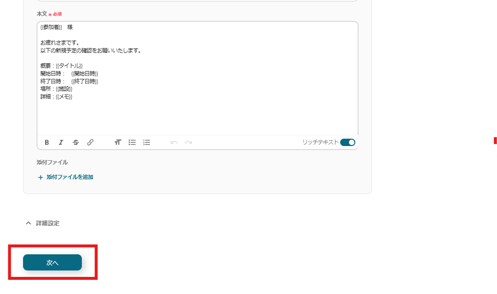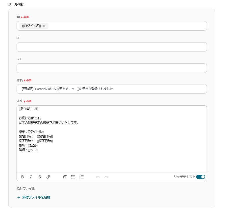 また、添付資料なども自由に設定が可能です。