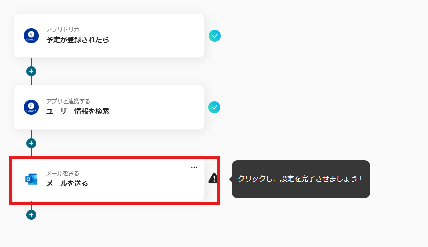 Garoonでカレンダーに予定が登録された際に、参加者にOutlookで自動的にメールを送信するフローです。