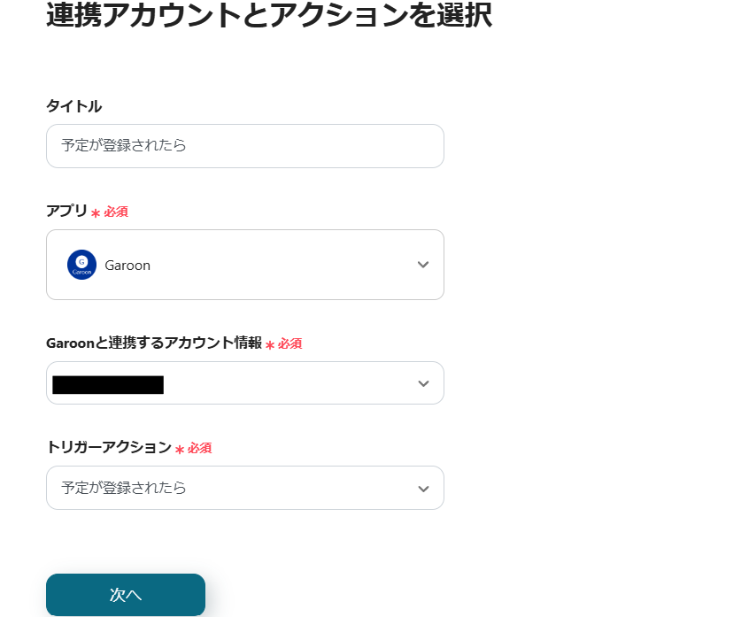 ステップ4:Garoonのアクション設定