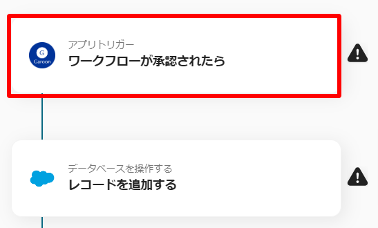 今回のフローは「Garoonでワークフローが承認されたらSalesforceにレコードを登録する」というものです。