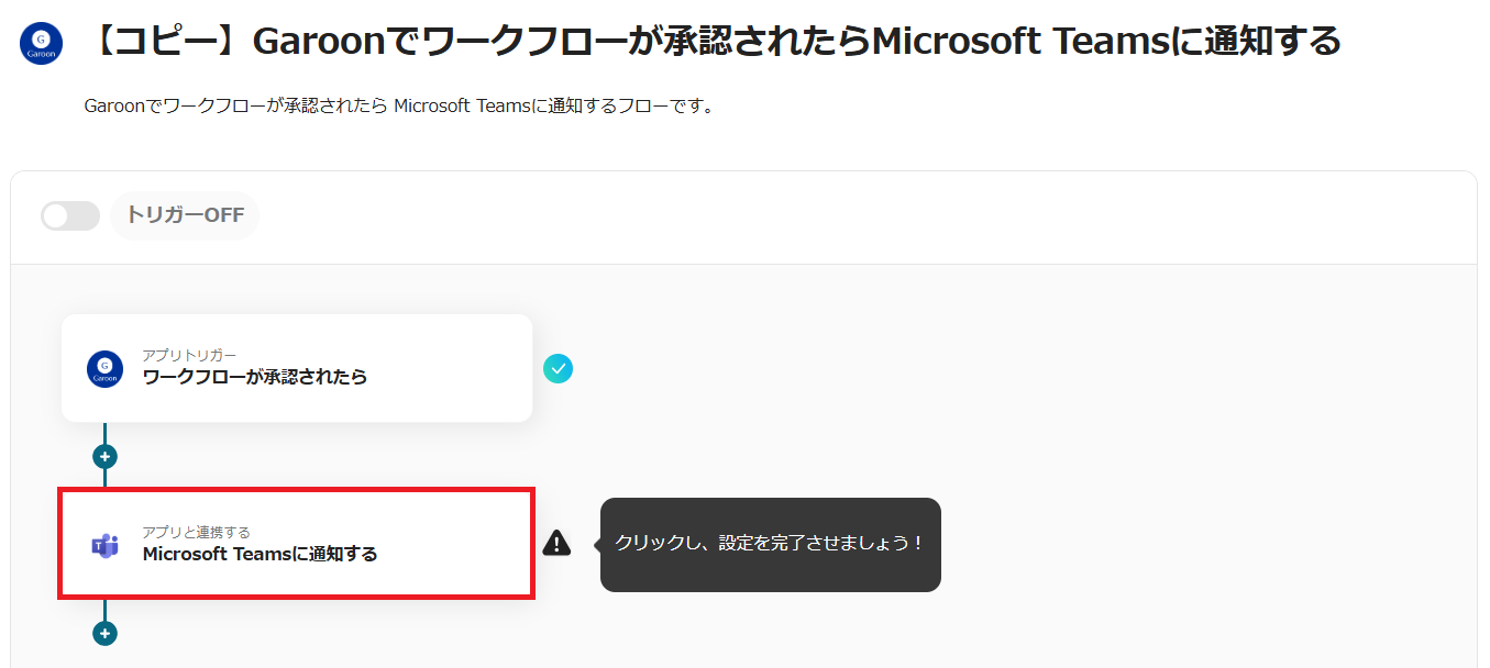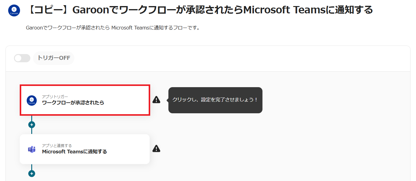 このフローではGaroonのワークフローが承認されるとトリガーが起動します。