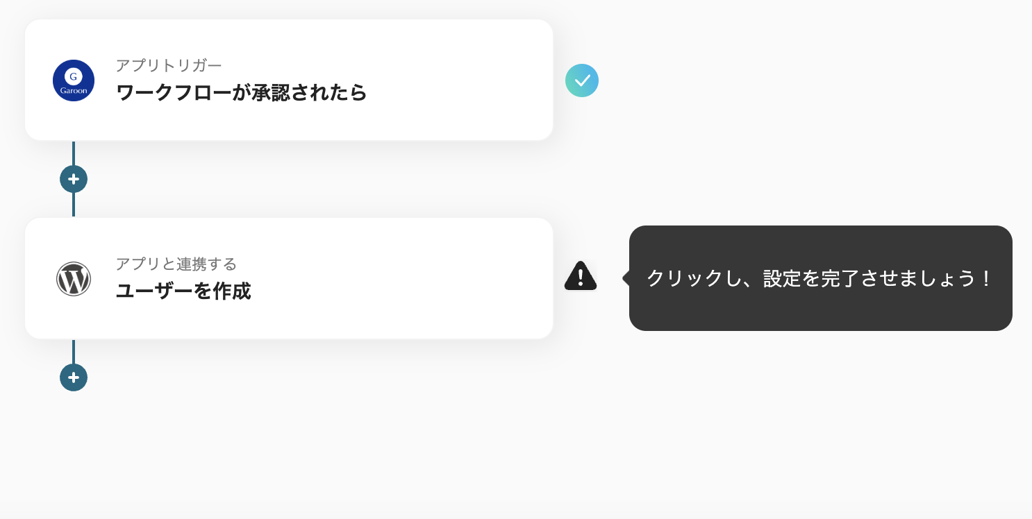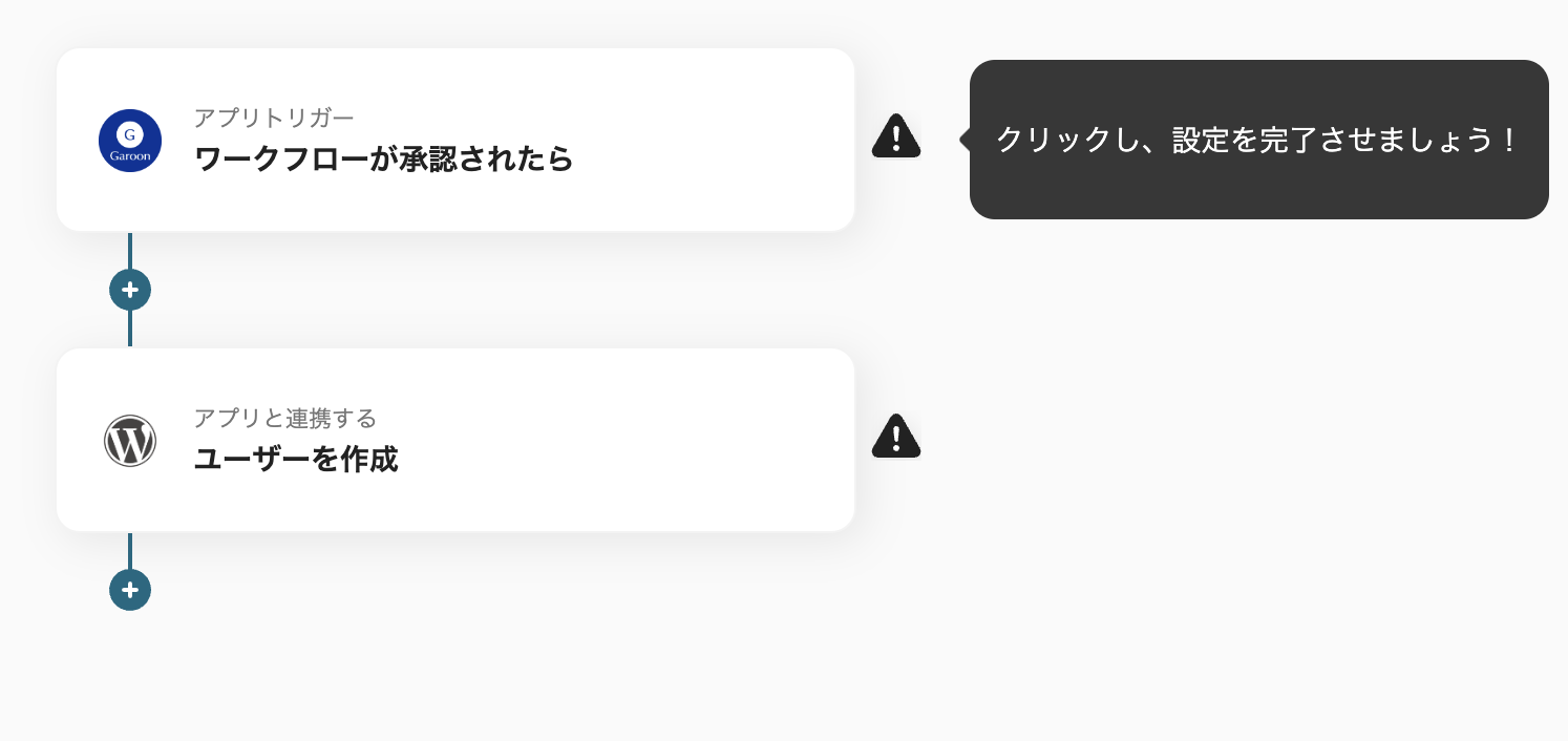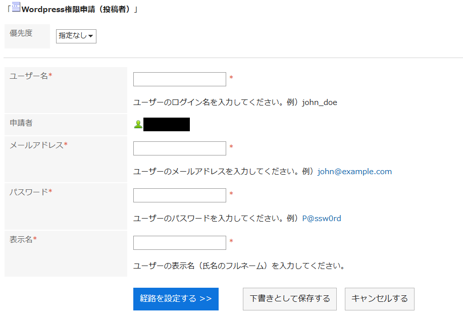 このテンプレートを使用することで、Garoonでユーザー権限の承認が下りた際、WordPress.orgのユーザー作成が自動的に完了します。