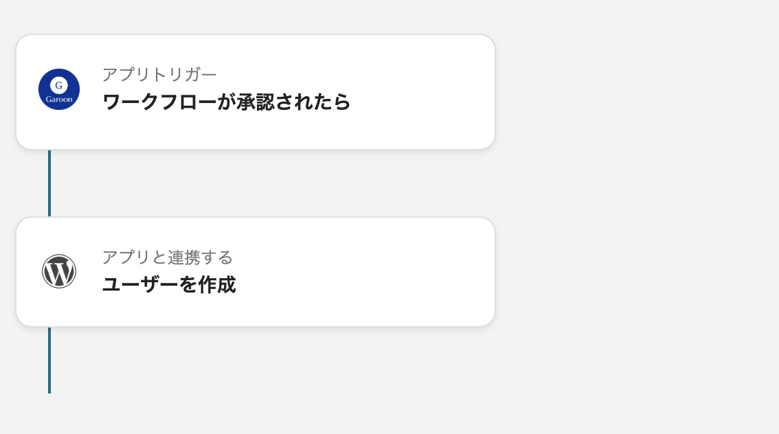 Garoonでワークフローが承認されたらWordPress.orgにユーザーを追加するフローです。