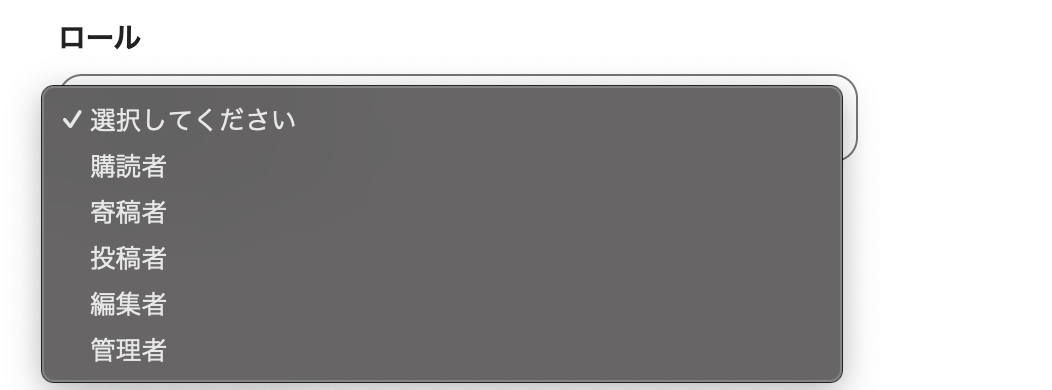 (5)「ロール」は、運用に沿った内容をプルダウンから選択してください。