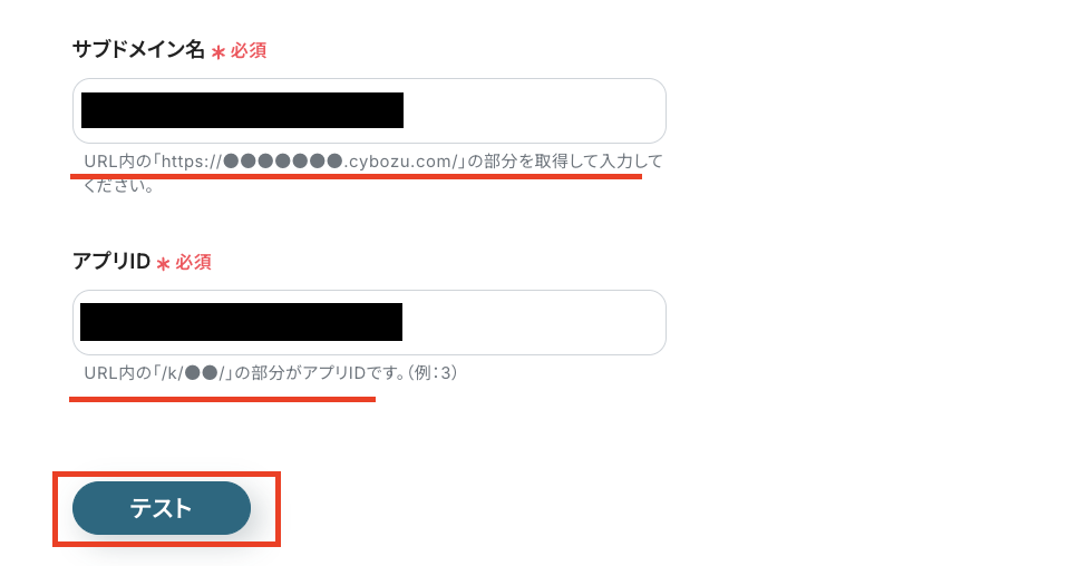 「サブドメイン名」と「アプリID」に、注釈に沿って情報を入力します。
