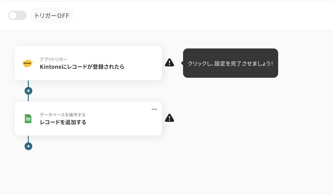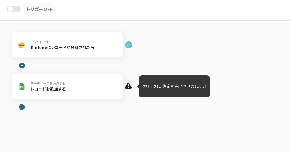 例えば、kintoneに新しいレコードが登録された際に、その内容を素早くGoogle スプレッドシートに追記できます。