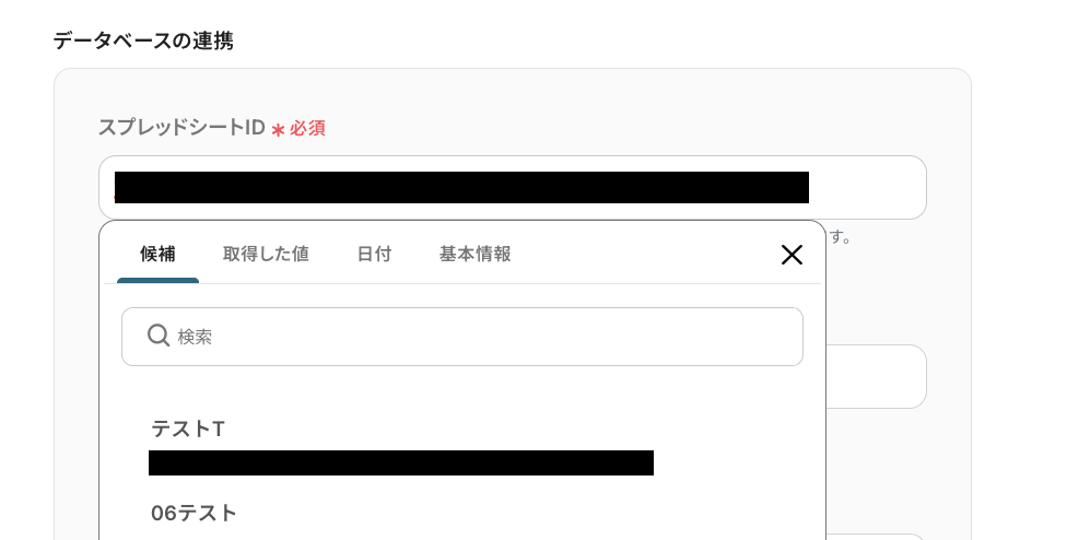 以下の画面のように、入力バーをクリックすると前ステップから取得したアウトプットを引用できます。このようにアウトプットを使用することで、kintoneにデータを登録した際、Google スプレッドシートにも同じようにデータが自動追加されるようになります!