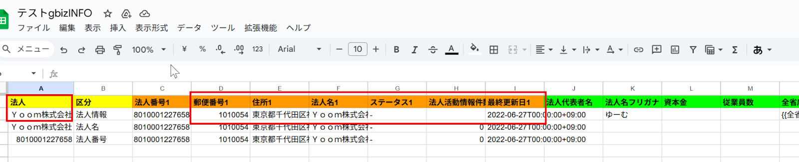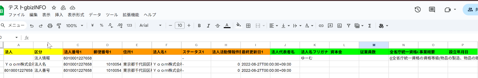 Google スプレッドシートに行が追加されたら、gBizINFO(経済産業省)で法人番号から法人情報を検索し通知する方法は以上です。