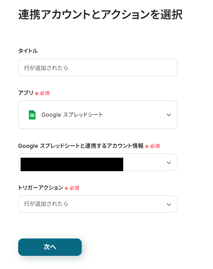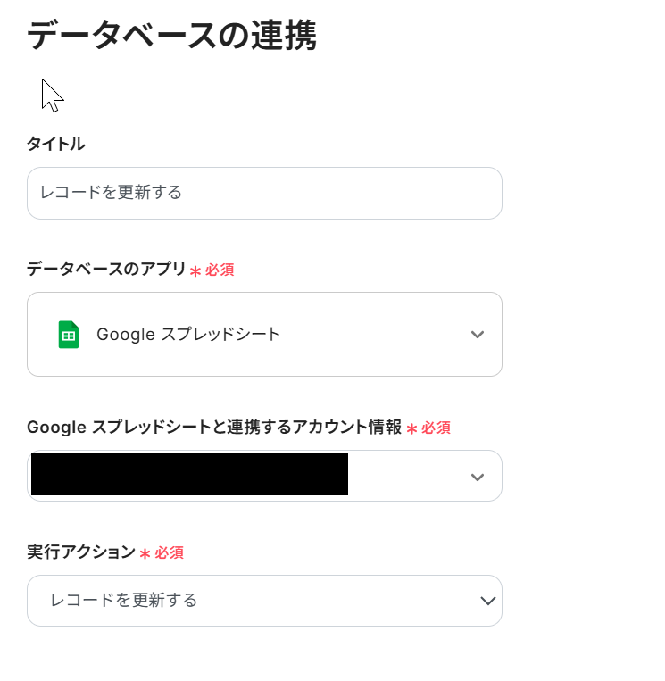 - Google スプレッドシートと連携するアカウント情報:マイアプリ連携した際の情報が記載されています。
