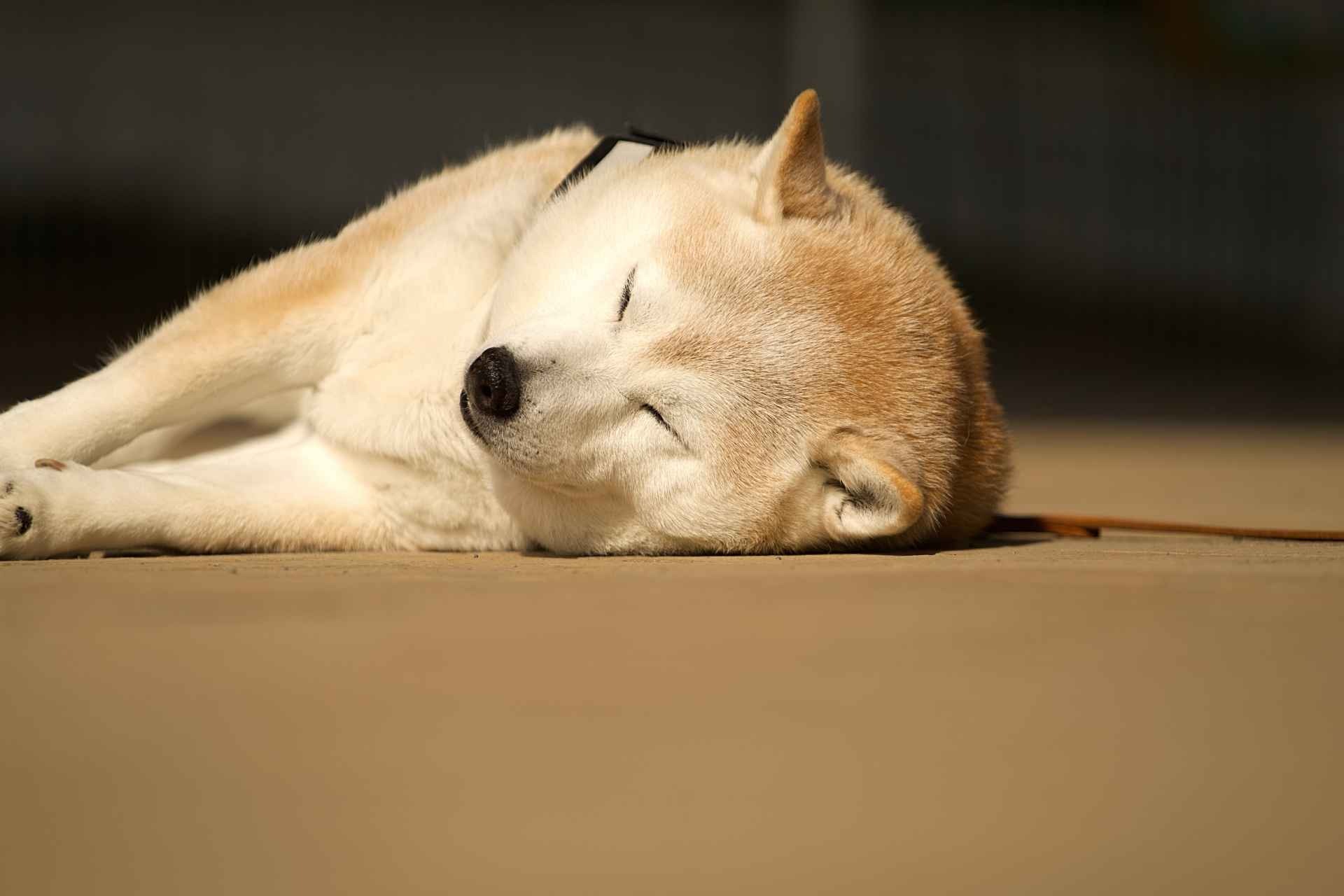 添付の写真をベースにして、あたたかみのある水彩画調のアニメイラストを作成してください。 #被写体 眠っている赤い柴犬のポーズと配置を維持。閉じた目と、柔らかい毛皮の質感、革のハーネスを詳細に。 #スタイル 光と影の表現が美しい高品質なアニメスタイル。ただし、線画は柔らかく、水彩のようなあたたかみのあるテクスチャを重ねる。 #ライティング 元の写真にある西日を強化し、黄金色の夕暮れの光が柴犬をやさしく包み込むようにする。光が当たる部分と影の部分のコントラストをやわらかくする。 #背景 元の地面を維持しつつ、より柔らかいグラデーションにする。全体的に、質感のある水彩紙に描かれたような風合いにする。