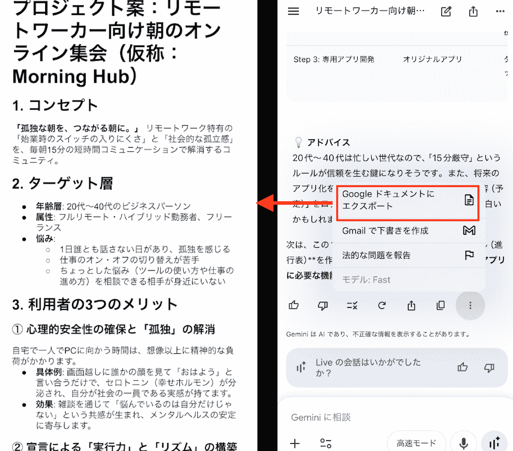 読書や家事をしている時に思いついた企画の種を口頭でGeminiに相談してみました。