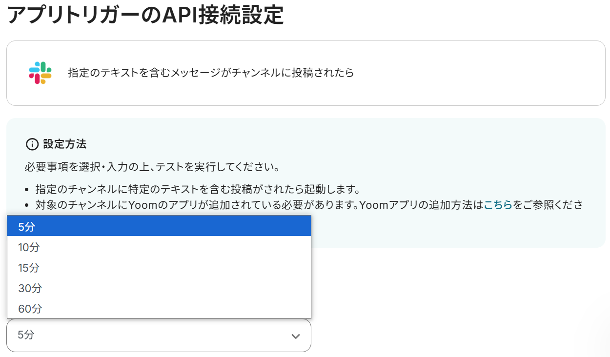まず下記のページを参考に該当チャンネルの「インテグレーション」からYoomを追加してください。