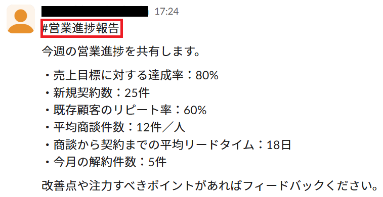 例: 「特記事項には目立った成果(新規顧客、売上アップなど)・課題(未達成の理由、障害など)・改善策や次月の目標(記載があれば)を含めてください。」