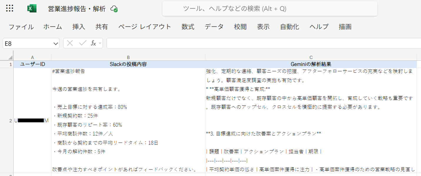 なお、この取得した値はこの後のGeminiの設定で活用でき、Geminiが生成した内容をMicrosoft Excelに自動登録可能です!