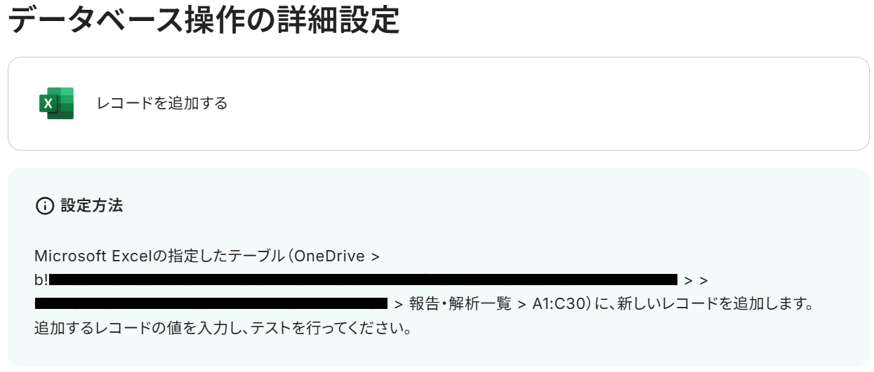 ・Microsoft Excelのデータベースを操作するオペレーションの設定に関しては下記をご参照ください。