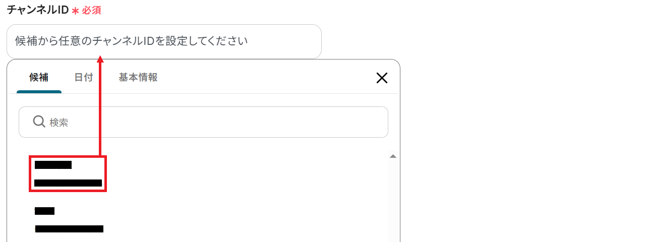 続けてチャンネルIDを候補から選択してください。