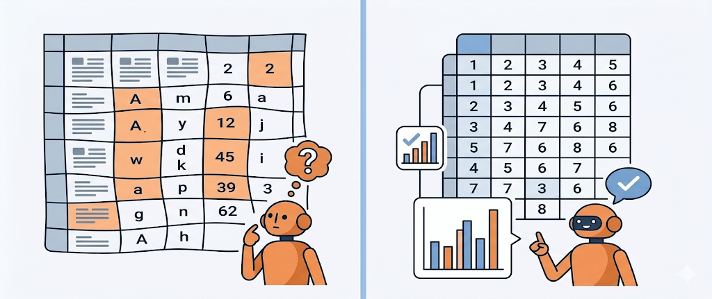 例えば、数値が入るべきセルにテキストが混ざっていたり、データの形式が不規則だったりすると、Geminiがデータの関連性を読み解けずグラフ化に失敗してしまいます。