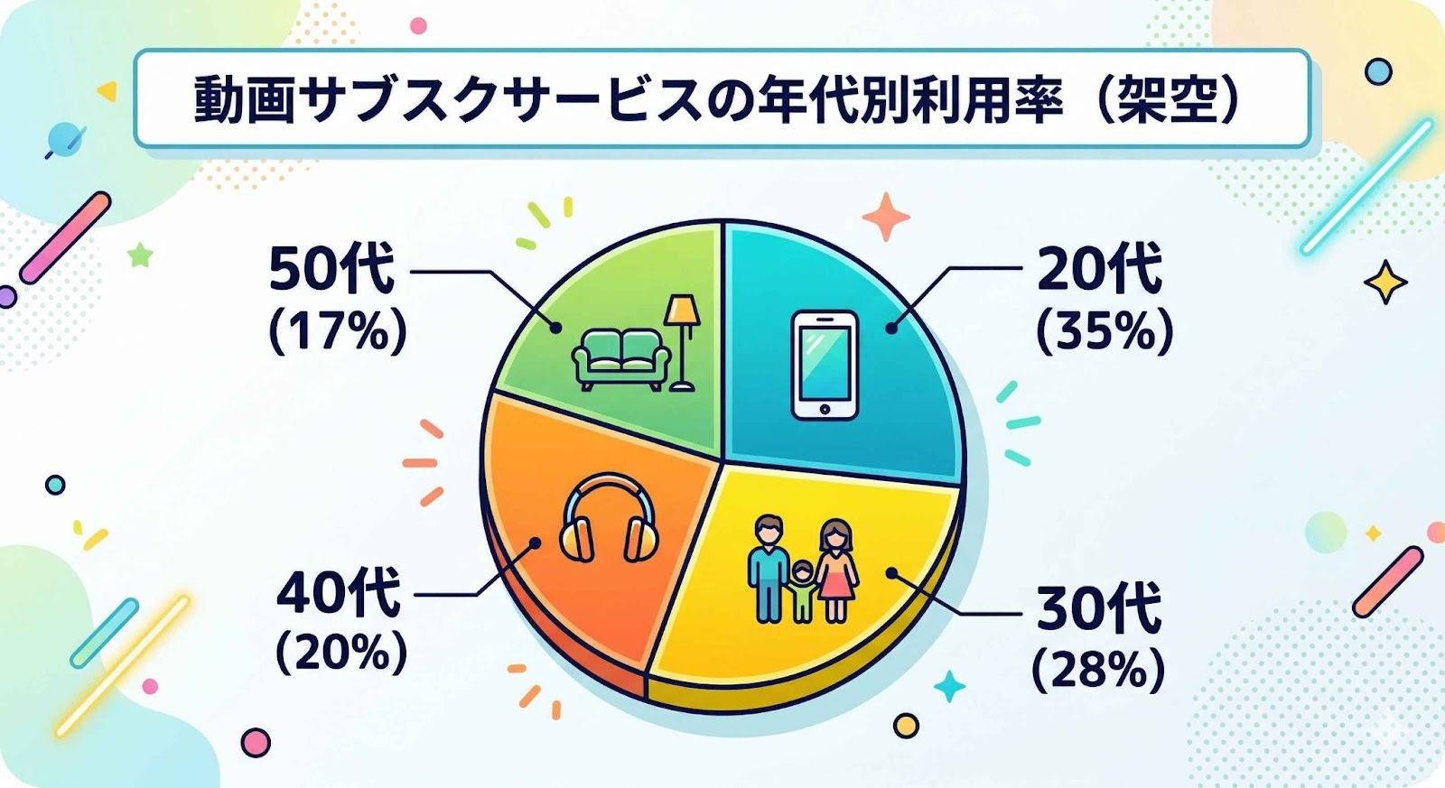 鮮やかでポップなスタイルの円グラフを作成してください。