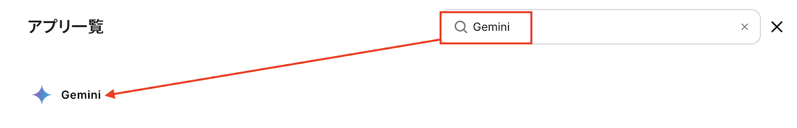 アプリ一覧は検索窓を使い、Geminiを選択します。