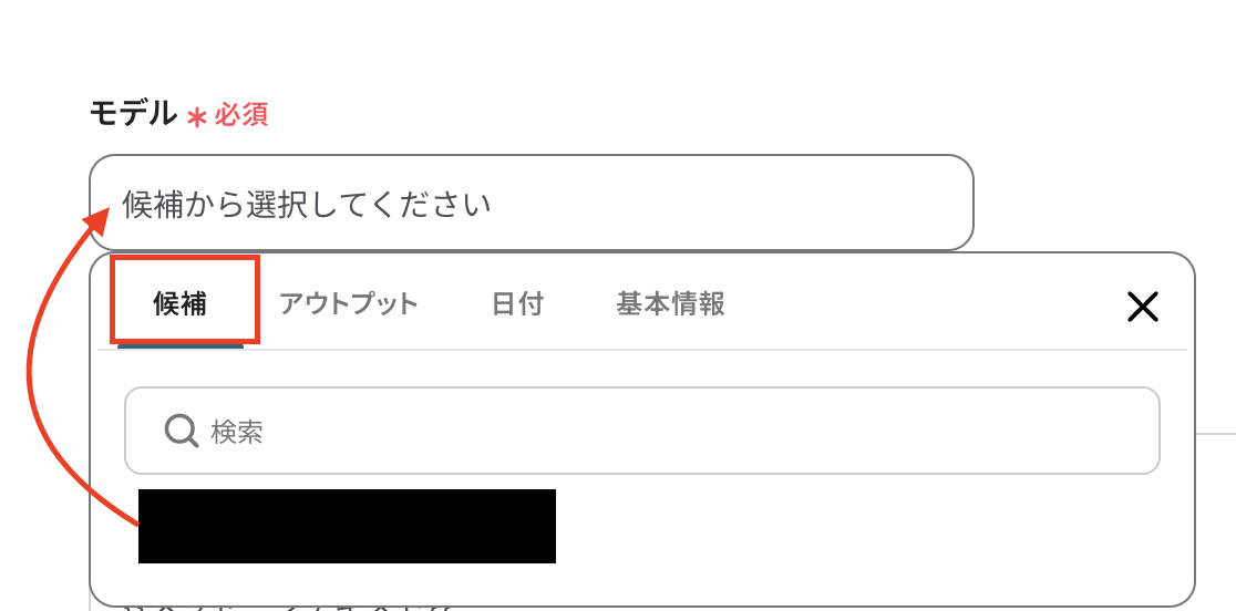 API接続設定 モデルを候補から選択してください。