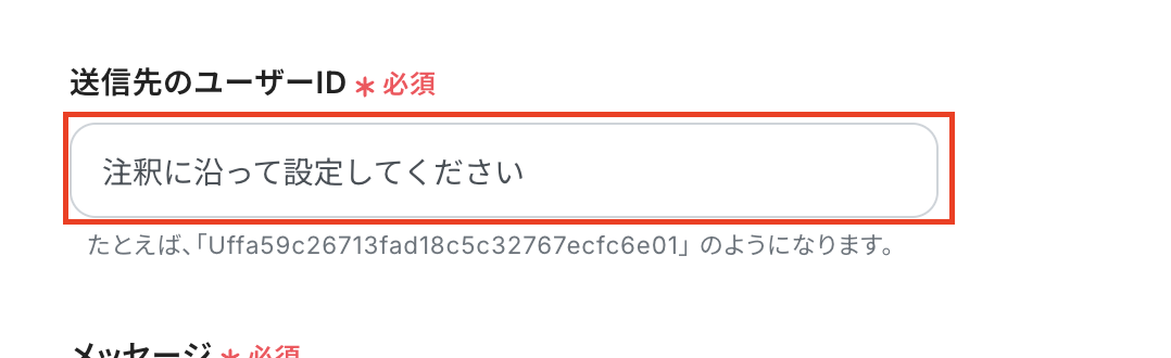 API接続設定 送信先のユーザーIDを設定します。 ユーザーIDの確認方法はこちら を参考にしてください。