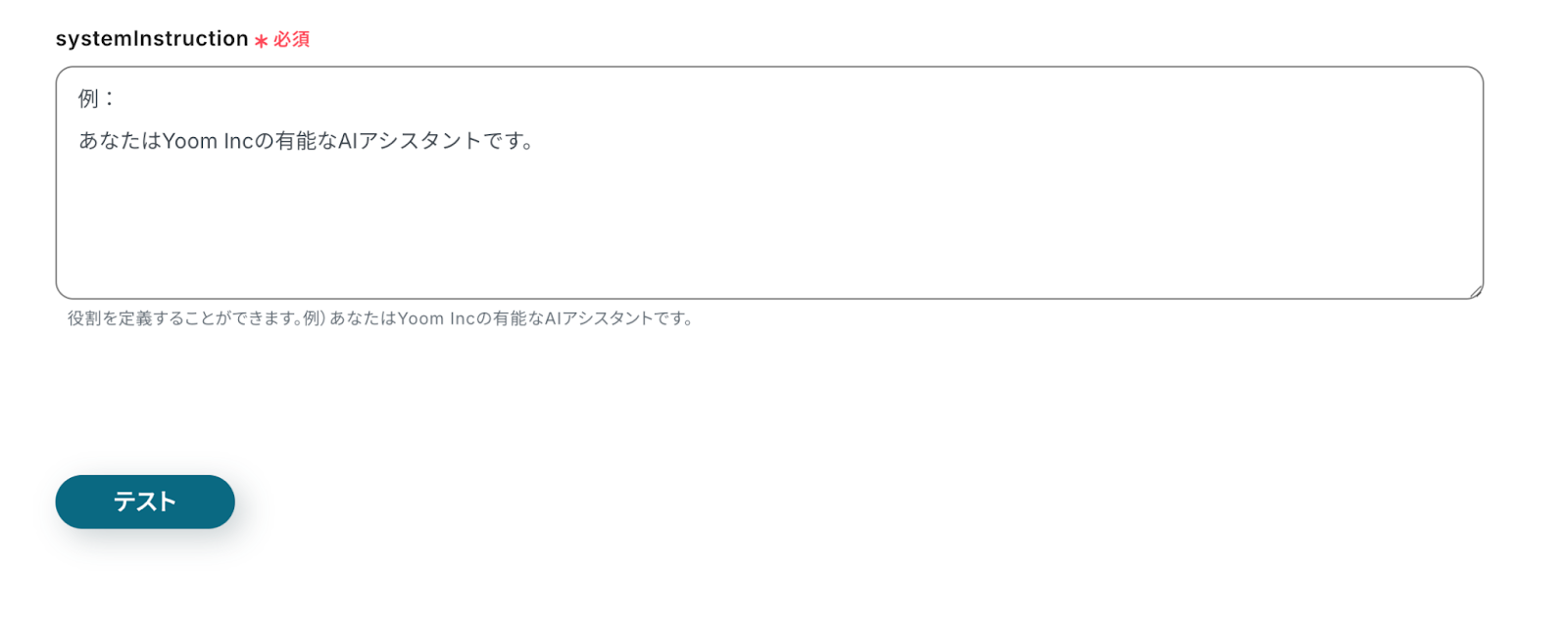 systemInstructionは、注釈を確認し設定しましょう。 設定したら、テストを実行します。