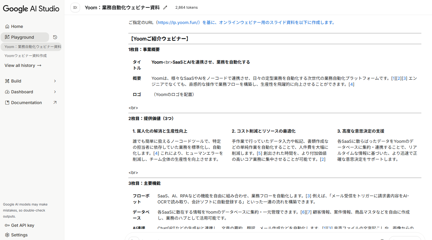 2.5 ProはGoogle AI Studioから利用しました。