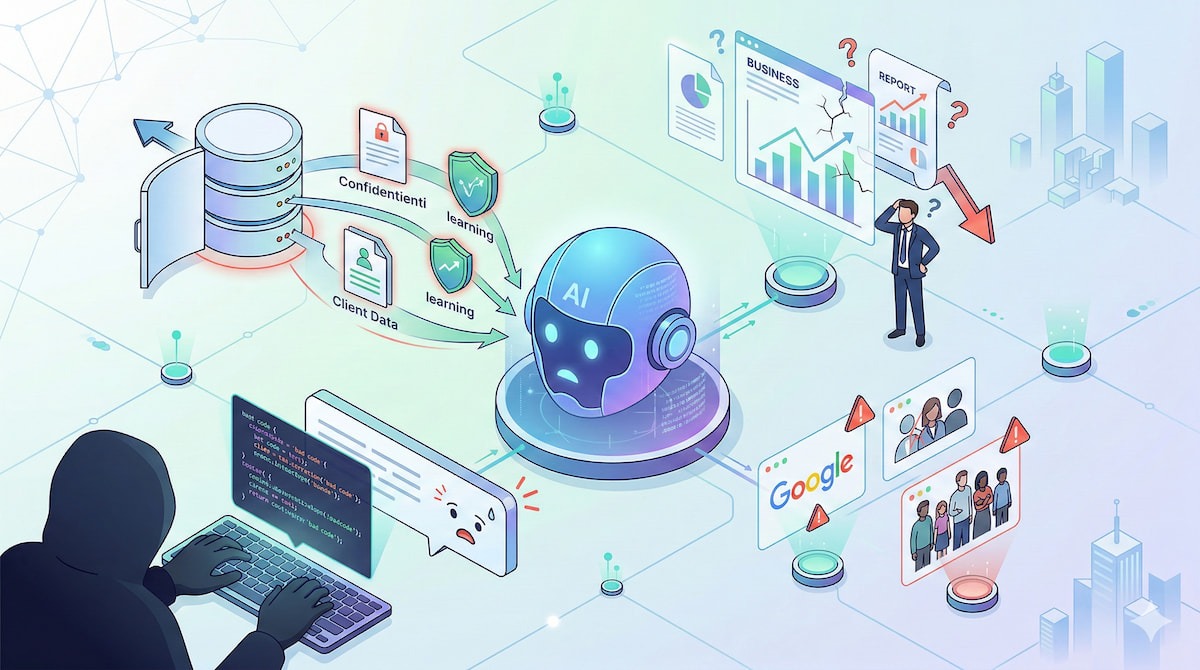Geminiは暗号化やセーフティフィルタといった堅牢なセキュリティ基盤を持っていますが、情報の入力ミスやハルシネーションといったリスクは常に存在します。
