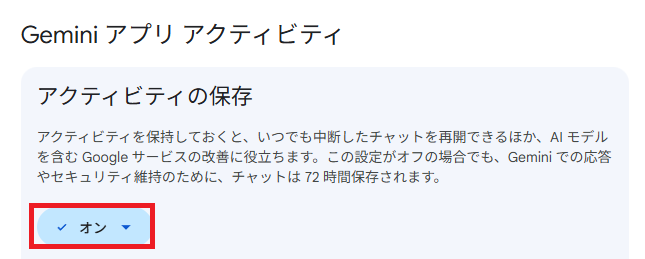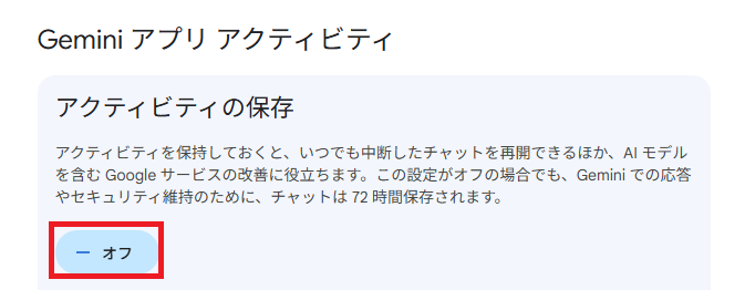 実際に、Geminiのアクティビティ設定を変更することでどのように挙動が変わるのかを検証してみました。