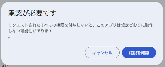 ここで1つ重要な注意点があります。 初回実行時には、Googleのセキュリティ仕様により必ず「承認が必要です」 というポップアップが表示されます。 画面の案内に従ってご自身のGoogleアカウントを選択し、「詳細」をクリックしてから「(プロジェクト名)へ移動(安全ではないページ)」へ進み、最後にアカウントへのアクセスを「許可」してください。