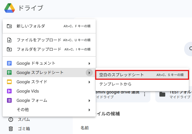 ご自身のGoogleドライブを開き、新規でGoogleスプレッドシートを作成。