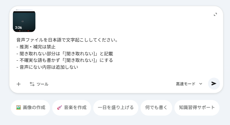 Geminiの音声認識を活用すれば、文字起こしにかかる時間を劇的に削減することができます。