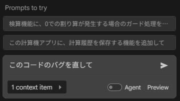 特に強力なのが「エージェントモード」という機能です。単なる一問一答のチャットにとどまらず、プロジェクト全体を俯瞰して複数ファイルを横断的に修正したり、指示に合わせて新しいファイルを自律的に作成したりといった、より高度で複雑なタスクもこなしてくれます。