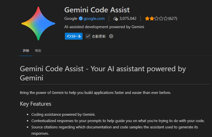 「Gemini」はGoogleが開発したAIモデルの総称ですが、それをプログラミングや開発業務に特化させて、VS Codeなどのエディタ上で直接使えるようにしたツールが「Gemini Code Assist」です。