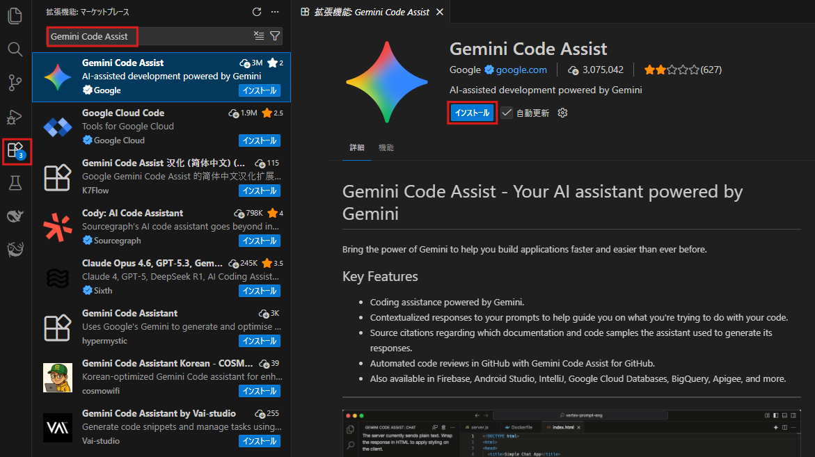 実際にVS CodeにGemini Code Assistを導入する手順を解説します。